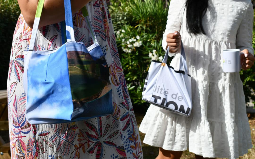 Votre communication évolue, vous voulez remplacer les visuels tissu de vos stands ? Faites comme Arkolia et transformez-les en cadeaux salariés ou goodies clients !