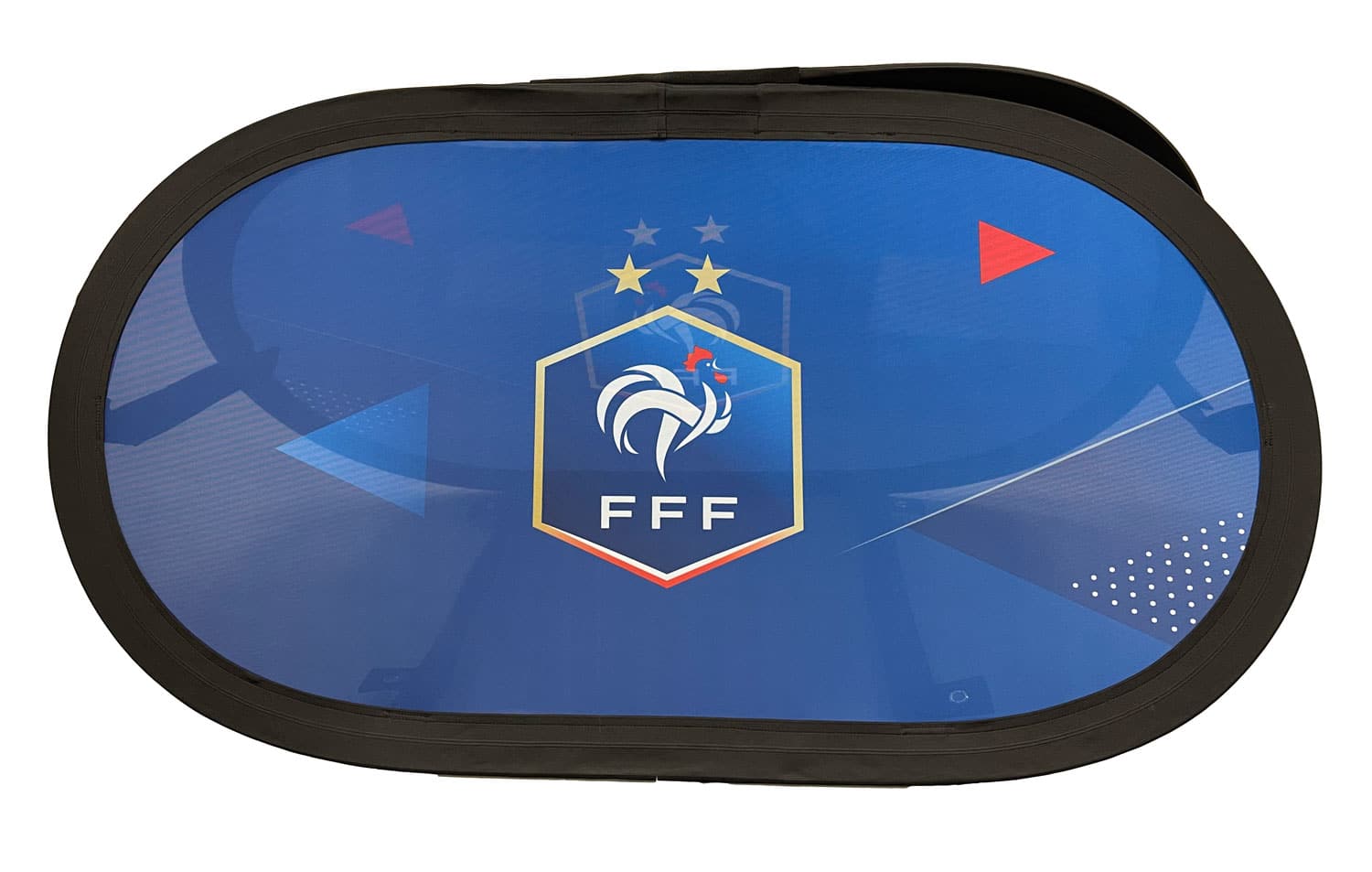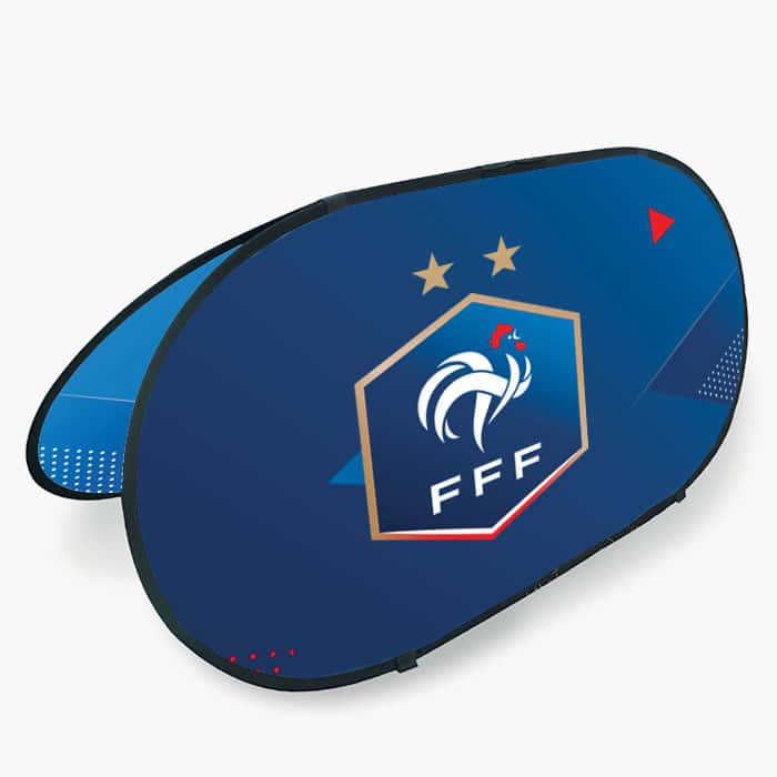 Ce type de drapeau de sol se replie très facilement pour être rangé dans son sac de transport.