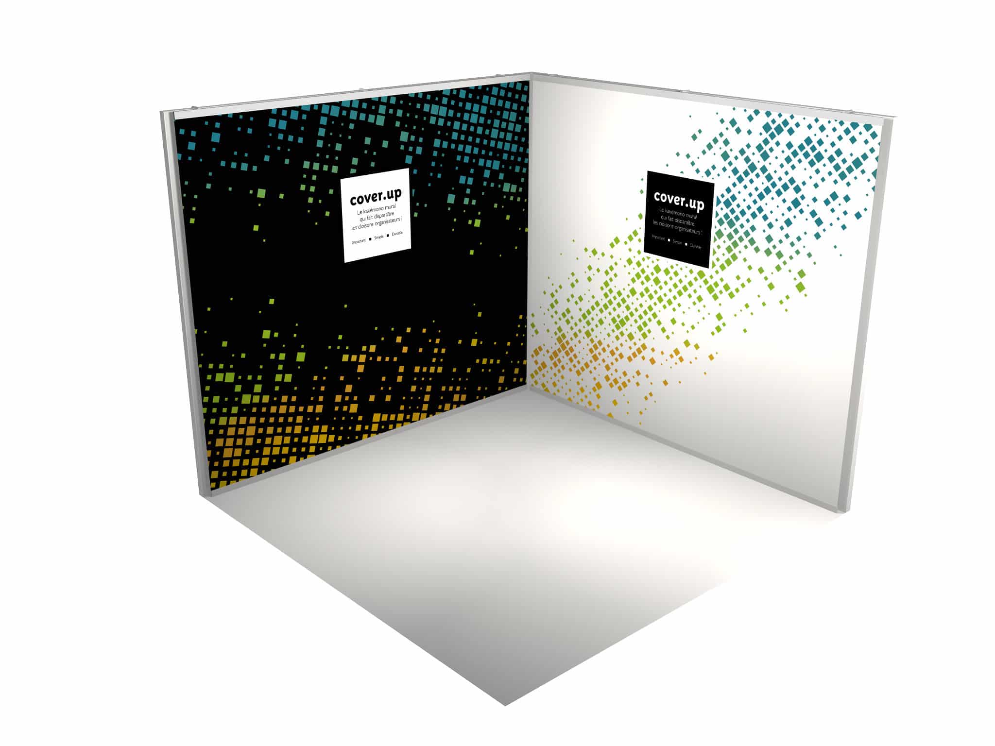 - Solution durable et économique : À la fin de votre salon ou événement, décrochez simplement le cover.up et rendez les cloisons de votre stand en parfait état. Ce système est réutilisable pour tous vos futurs événements, ce qui en fait un choix économique et écologique.