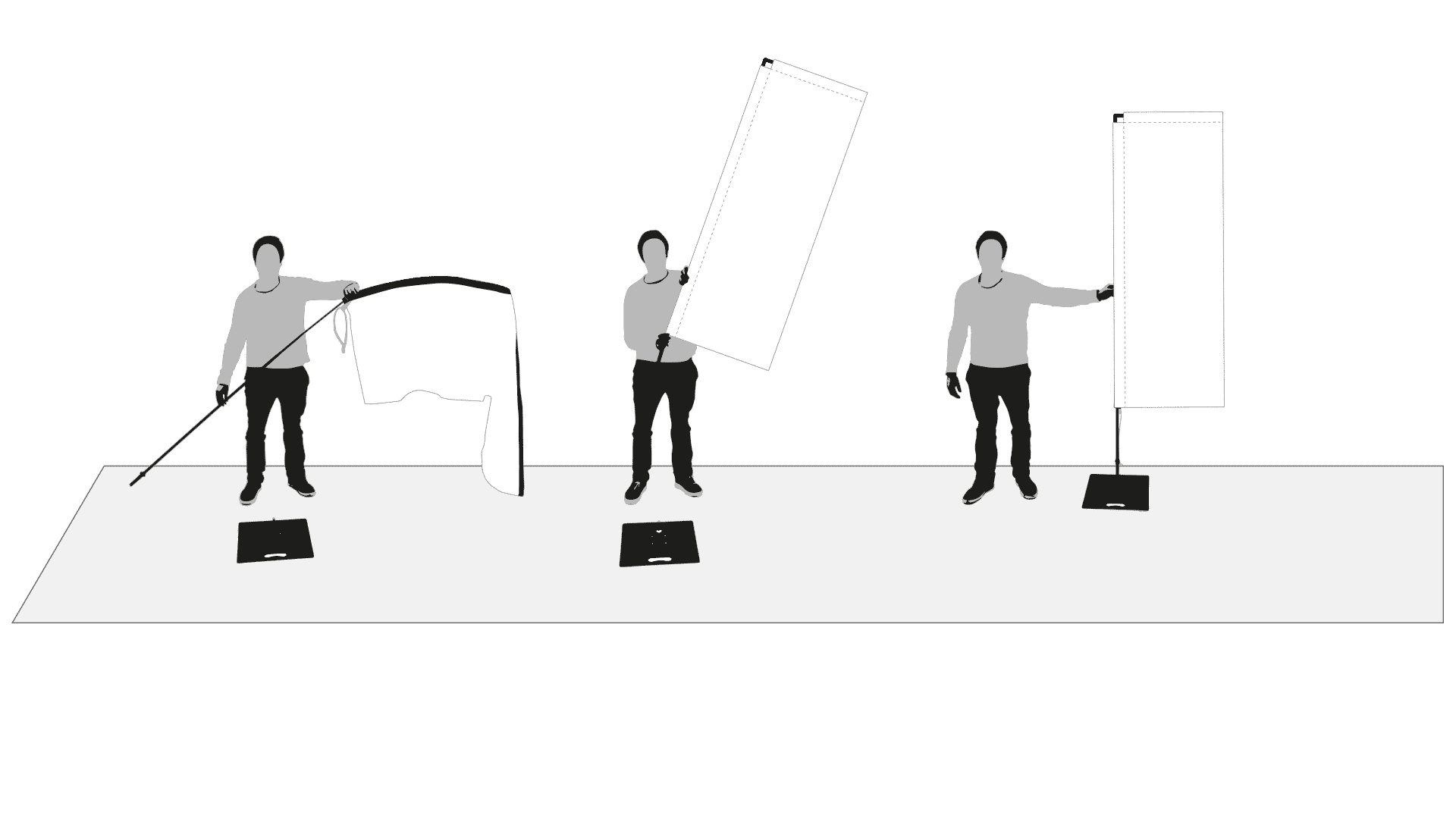 - Visibilité optimale : La tension optimale du visuel est permise par le mât, offrant une visibilité garantie. La hauteur peut atteindre jusqu'à 4,8 mètres.