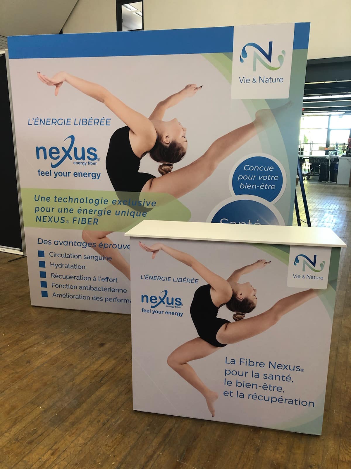 Les visuels du Comptoir Xperience sont imprimés par sublimation sur tissu, garantissant une qualité d'impression exceptionnelle. Un joint en silicone assure une fixation précise et un rendu optimal.