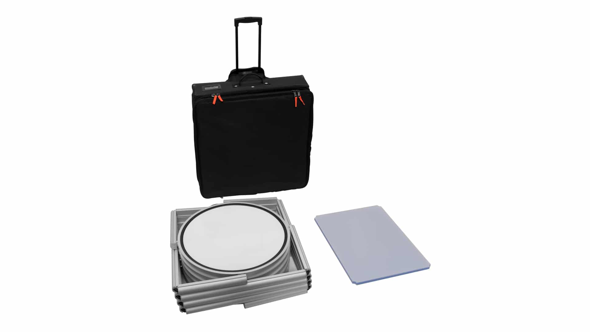 - Transport facile : Une fois pliée, la vitrine de stand helix devient une solution ultra compacte que vous pouvez emmener partout, notamment grâce à sa valise de transport à roulettes.