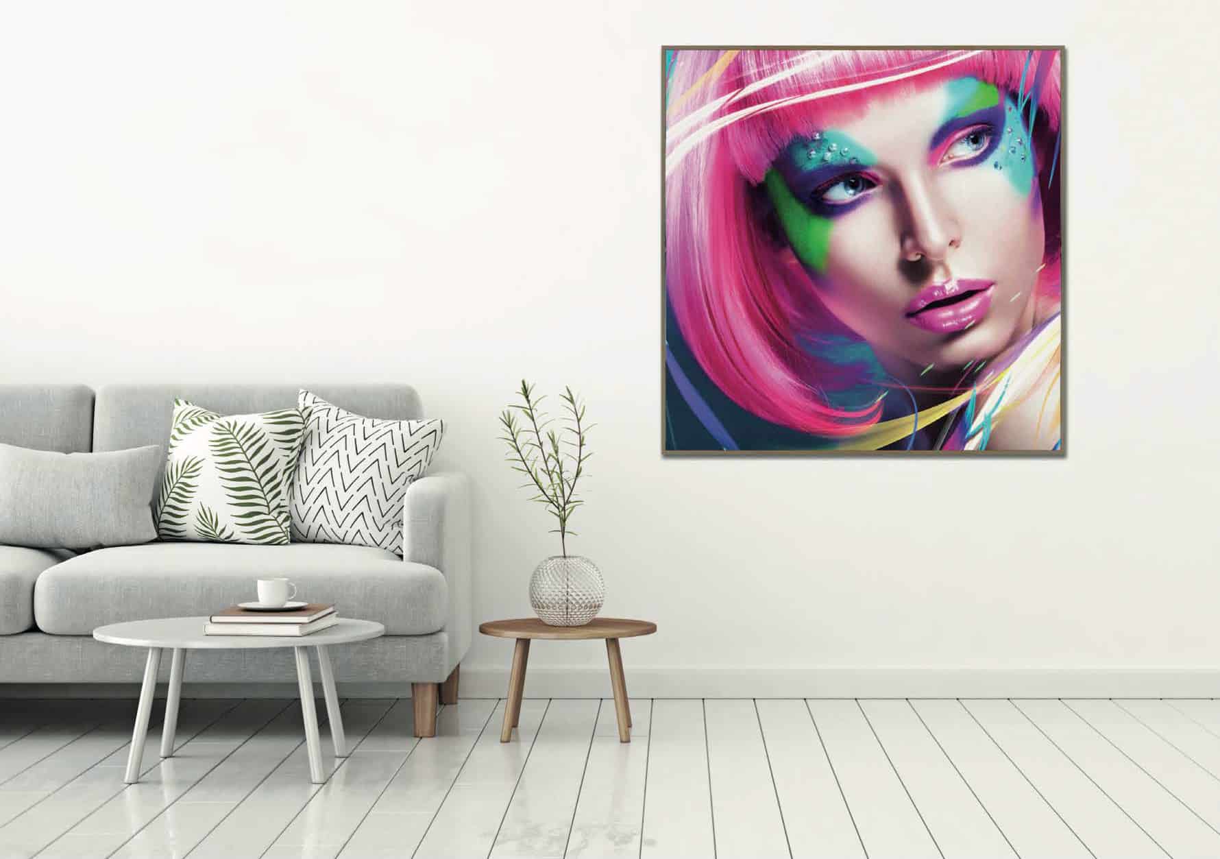 Cadre en bois au visuel interchangeable imprimé par sublimation sur tissu.