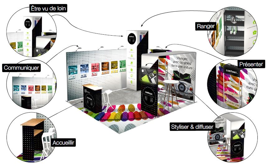 Contour vous permet de créer une présence remarquable lors de chaque exposition. Son design élégant et sa portabilité exceptionnelle font de lui un choix judicieux pour les exposants modernes. Avec Contour, vos idées prennent forme, et votre stand devient l'expression de votre créativité.
